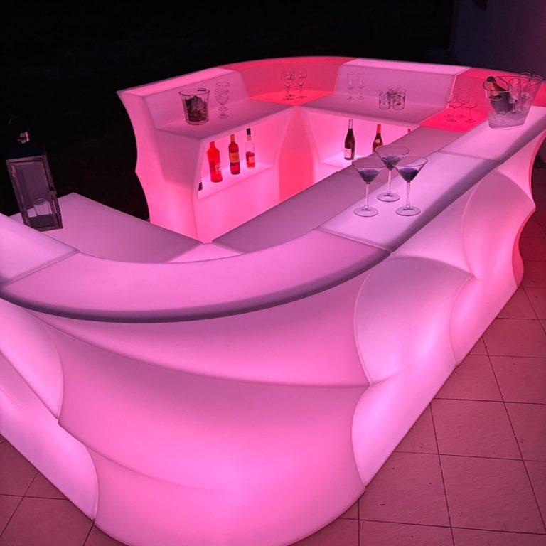 Nous proposons également BAYAHIBAR, un bar lumineux LED modulable, pensé pour sublimer les cocktails, soirées privées et événements professionnels, en apportant une expérience visuelle moderne et immersive.